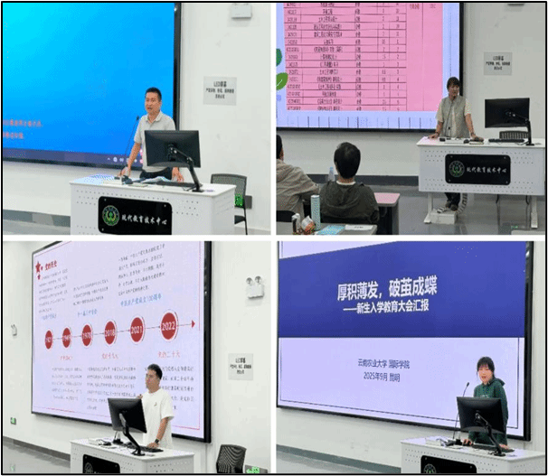 会上,院党委副书记徐兴倩首先代表学院对2025级新同学的到来表示热烈欢迎和真诚祝贺。学院党群办、团委及学工办、教学办的相关工作负责老师分别从入党启蒙教育、团组织建设与发展工作、教务管理、校纪校规、奖助贷及评奖评优政策宣传、新生就业创业及考研动员等方面做了详细介绍,更好的帮助新生融入大学生活。