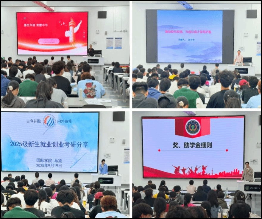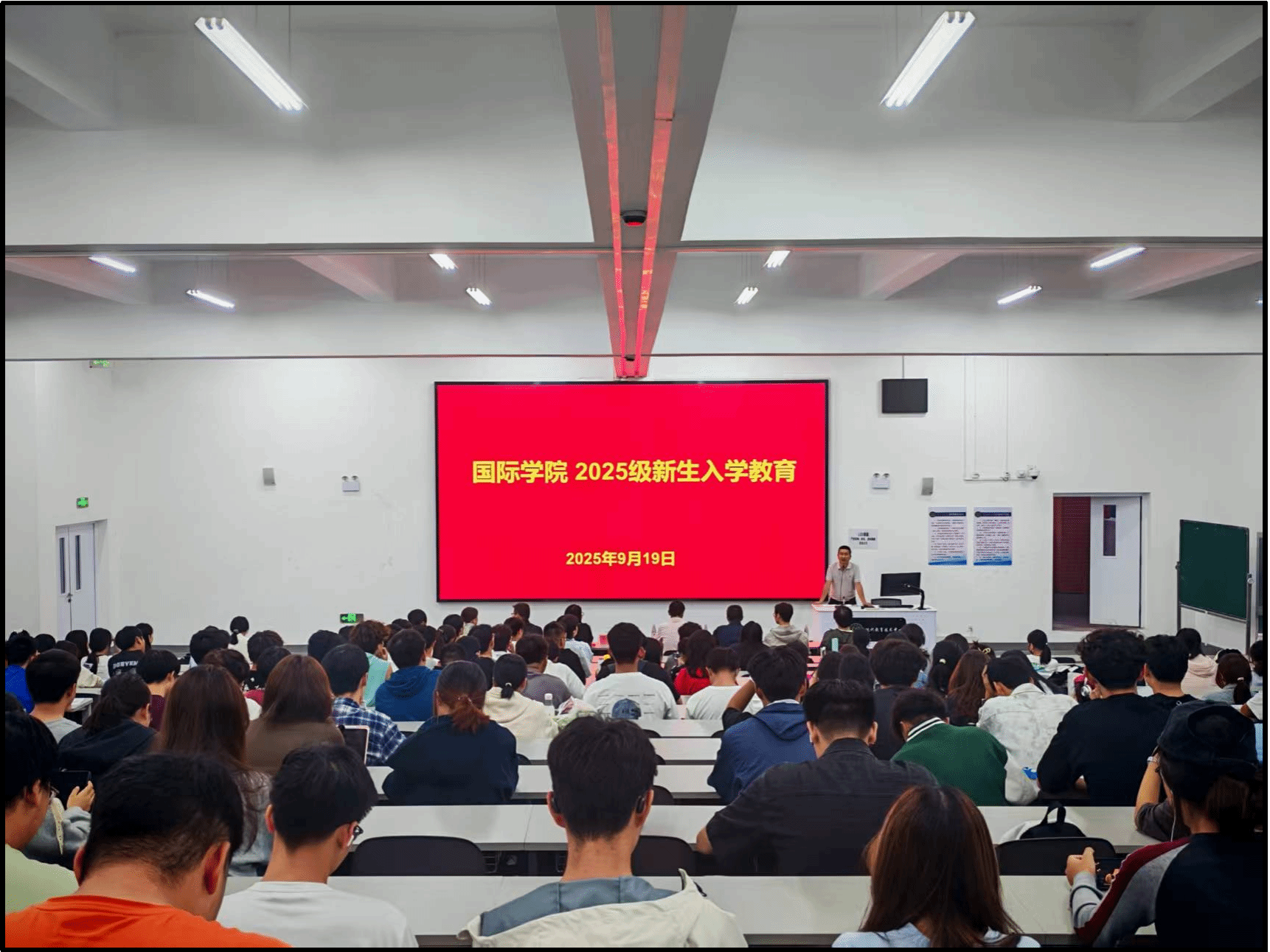 为助力新生顺利开启大学生活新篇章,国际学院于2025年9月19日晚上7:00在正德楼D区401教室举办2025级新生入学教育大会,本次会议由国际学院党委副书记徐兴倩主持,党群办、教学办、团委及学工办、新生班主任、优秀学生代表及2025级全体新生共有300余名师生参加了本次教育大会。