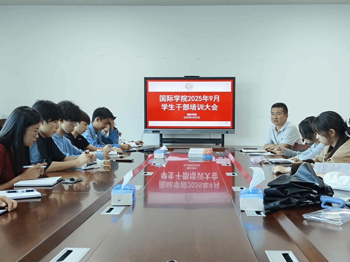 为全面提升学生干部的综合素质与服务能力,国际学院将对学生干部开展全面培训。2025年9月29日中午,学院在明理楼B区509会议室召开第一次学生干部培训会,本次培训由院党委副书记徐兴倩主讲。院团委、学生会、青协、易班各主要负责干部以及各班班长共40名学生骨干参加本次会议。