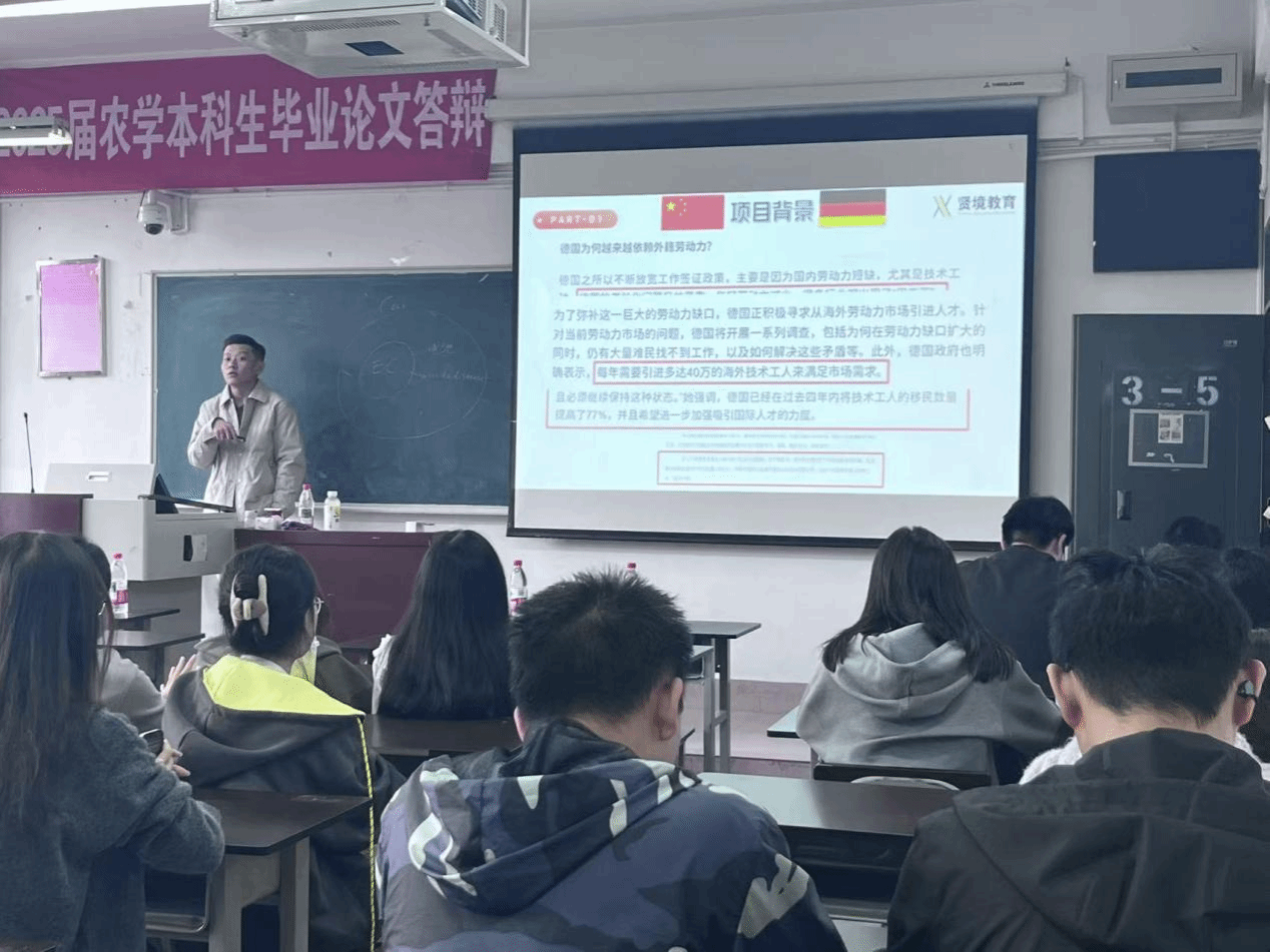 宣讲会上,云南贤境育人教育集团中德就业项目总监沈子竣老师重点围绕毕业生最关注的就业资源展开介绍,针对不同专业毕业生需求,提供 “岗位精准匹配 + 就业跟踪指导” 的一站式就业服务,就学生关注的岗位需求、职业发展路径、薪资福利等问题,沈老师通过案例分享、互动问答等形式逐一解答,为学生提供精准的就业指导。