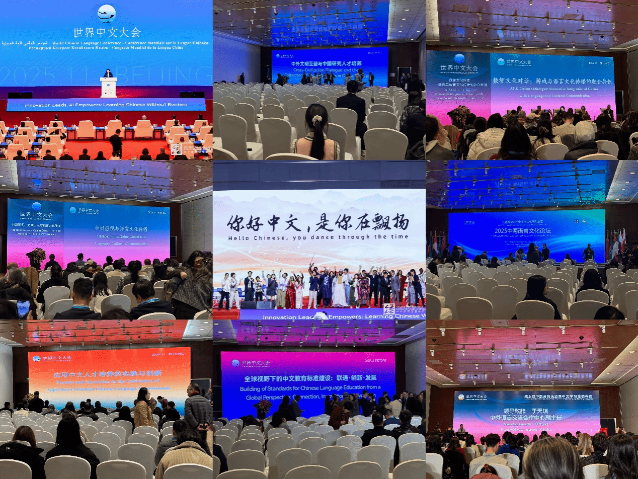 2025年11月14-16日,2025世界中文大会全体会议在北京国家会议中心成功举办。此次世界中文大会的主题是“创新引领 数智赋能——让中文零距离”。国际学院汉语国际教研室派教师赴京参会并聆听了多个主题的报告。