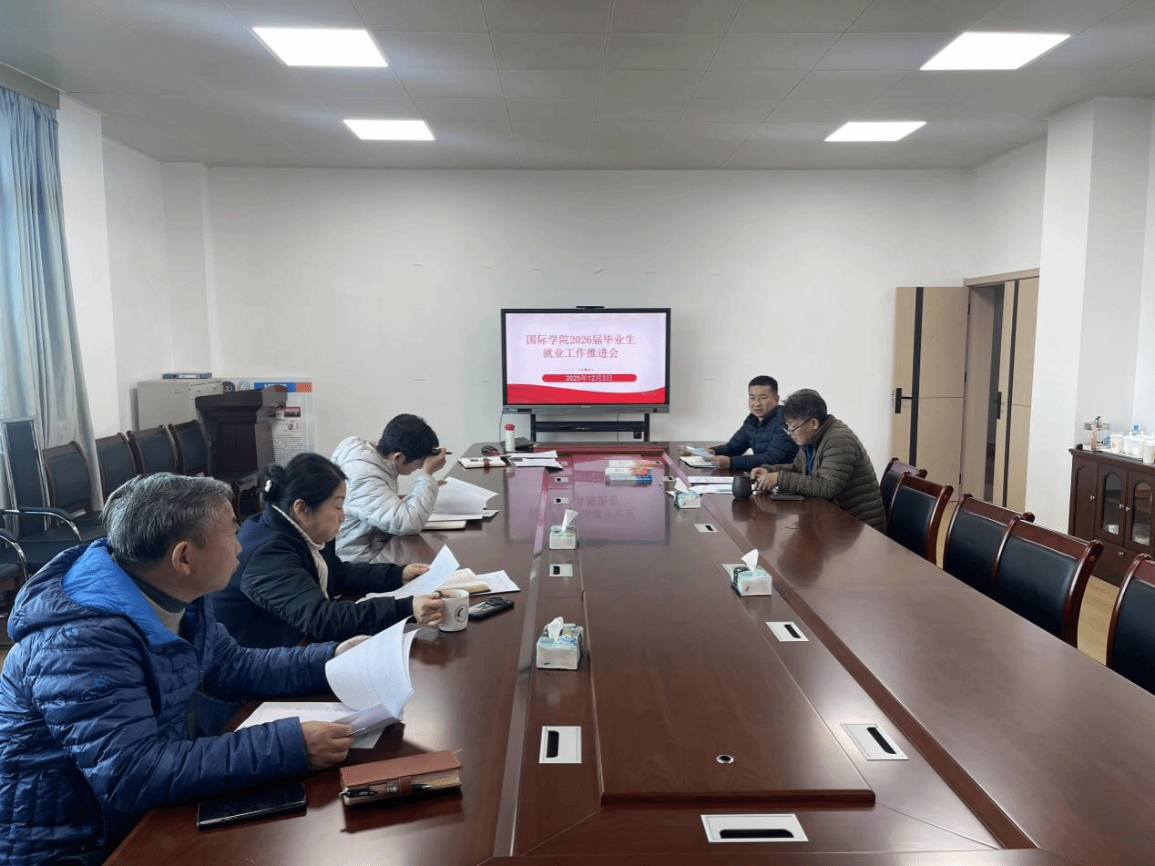 为进一步推进2026届毕业生就业工作,提升就业服务质量,国际学院于2025年12月3日16:00在明理楼A区509会议室召开就业工作推进会。学院领导班子成员、毕业班班主任、辅导员及就业联系人参加会议。