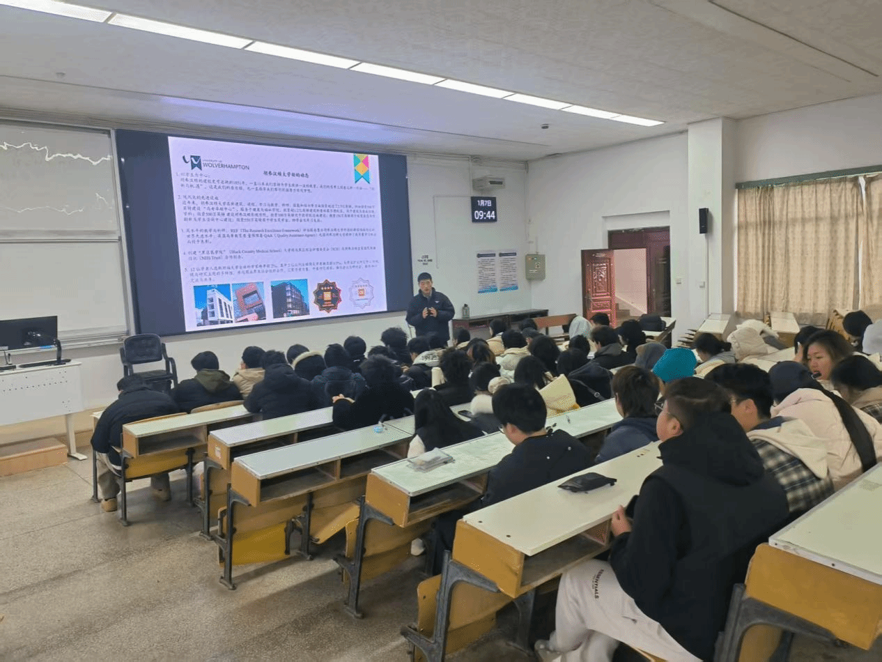 2026年1月7日上午9:30,国际学院在厚德楼3-5教室举办了伍尔弗汉普顿大学专场宣讲会。国际学院领导、学工办教师、班主任及土木工程专业学生共同参加了此次宣讲会。