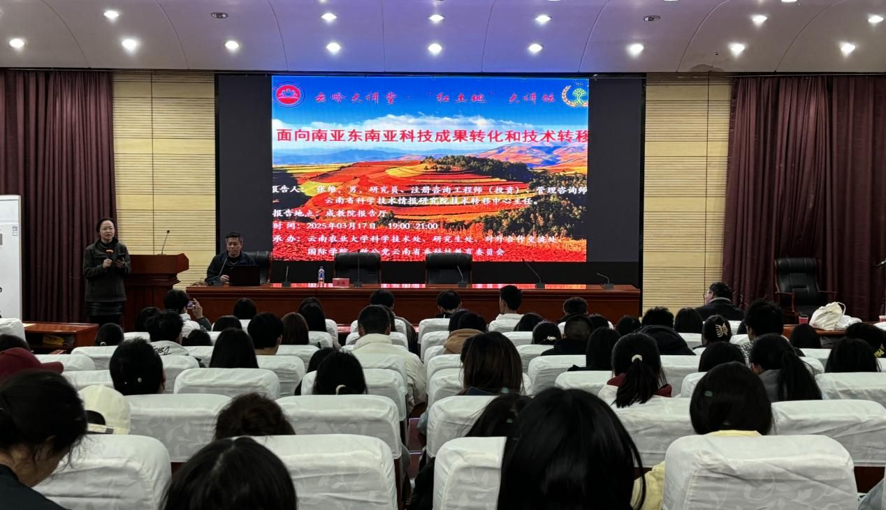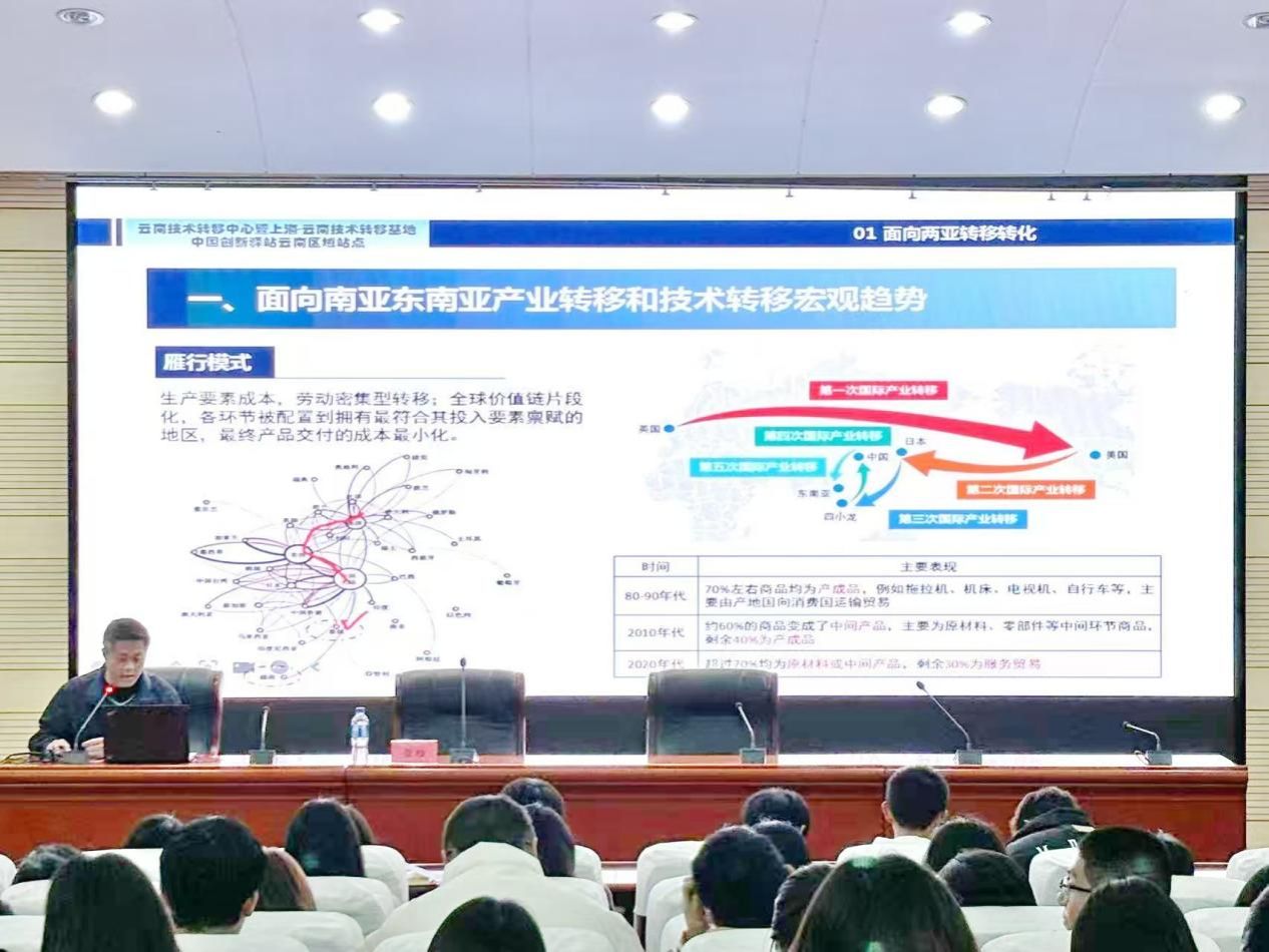 本站消息 3月17日,由学校科学技术处、研究生处、对外合作交流处、国际学院及致公党云南省委科技教育委员会共同组织的“面向南亚东南亚科技成果转化和技术转移”主题讲座在学校成教院报告厅举办,活动邀请云南省科学技术情报研究院技术转移中心主任张维研究员主讲。来自经济管理学院、食品科学与工程学院、资源与环境学院、国际学院以及学校各个国际联合实验室的160余名师生代表参加活动。讲座由国际学院副院长路遥主持。